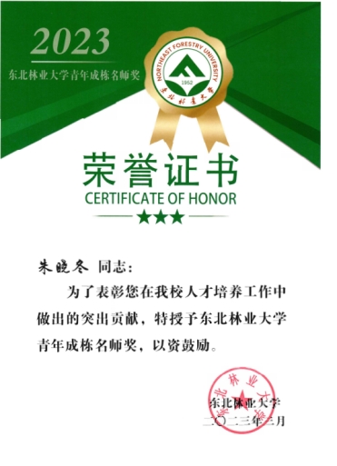 朱晓冬,家居与艺术设计学院,家具设计与工程专业主任,教授,硕士生导师。国家级一流本科课程《家具与室内装饰材料》主讲教师,东北林业大学青年成栋名师,主要从事家具设计与材料、家具人体工程学等方面的教学研究工作。